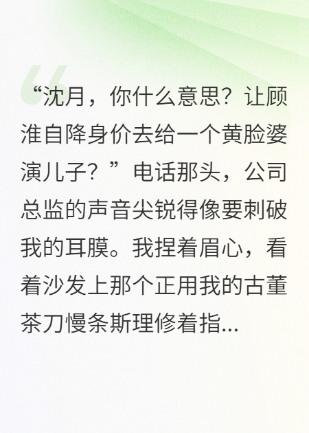 [11-12 15:18] 岁月忽晚旧人间:小说(温凝周羡安姜瑶江晏舟)TXT一口气在线+无障碍结局 故事主线围绕【温凝周羡安姜瑶江晏舟】展开的精品短篇小说《岁月忽晚旧人间:小说》,由知名作家“青木浅”执笔,情节跌宕起伏,本站无弹窗,欢迎阅读!本书共计20253字,17章节,更新日期为2025-11-12。该作品目前在本网 【xbcweb.com】上完结。小说详情介绍:分手第三年,我去医院产检,挂到了前男友的专家号。他看着我的资料冷笑:“被我甩了就自甘堕落,未婚先孕,温凝,你就这么缺男人?”“用不用我帮你推算一下日期,看看谁是孩子父亲?”我低头摸着无名指上硕大的钻戒,没告诉他。医院系统延迟,我上个月刚结完婚。