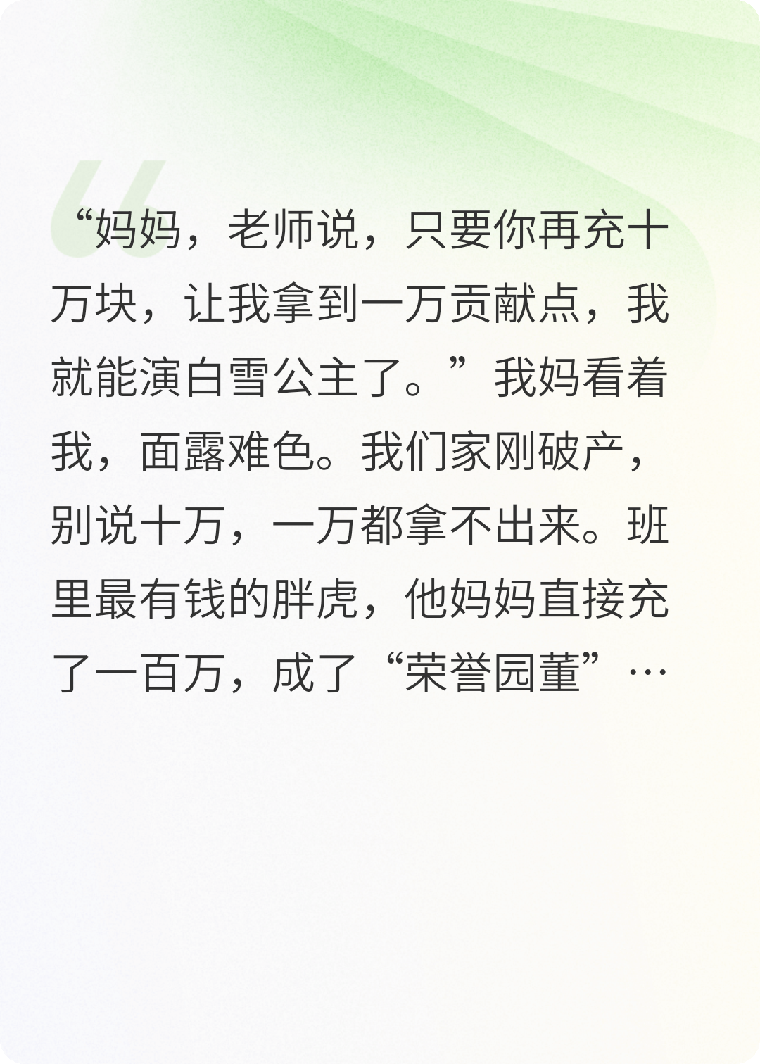 [11-12 15:52] 我建幼儿园被网暴,公司宝妈把圣母撕了 我斥资三千万给全公司员工的孩子建最好的双语幼儿园,只为奖励员工,一起进步。却被一个刚入职的丁克女大...