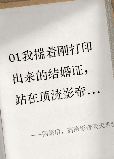 [11-12 15:53] 人生若只如初见 1我亲手把公司捧上市的那天,隐婚七年的影后老婆终于想起来要给我们补办一场婚礼。可当我赶到时,她正...