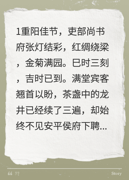 [11-12 15:52] 我儿周岁宴,前夫哥疯了 在我儿子周岁宴上,我的前夫陈铭冲了进来。他双眼赤红地抓着我的手腕:“苏晚!你竟然敢生下别人的孩子?...